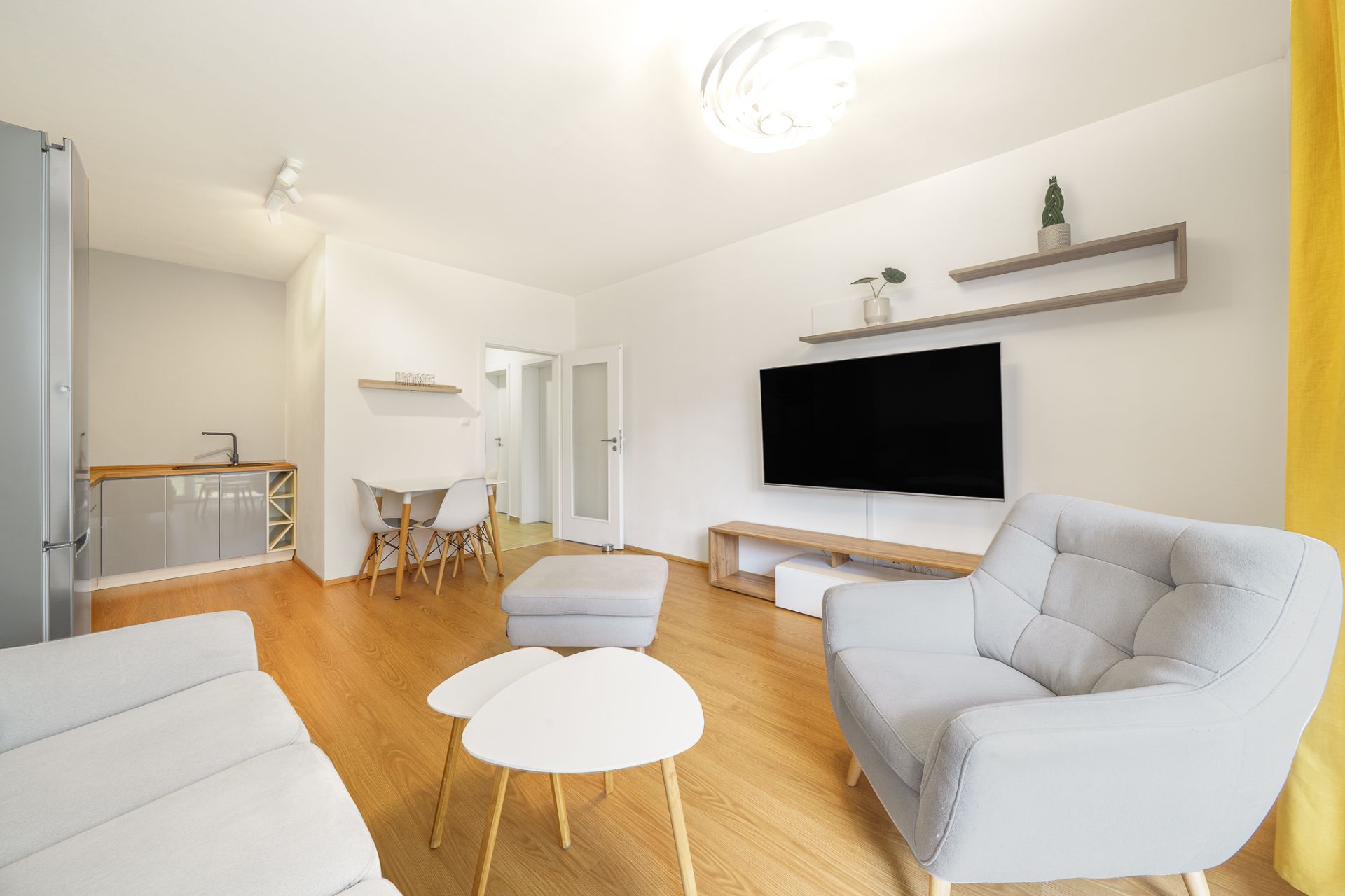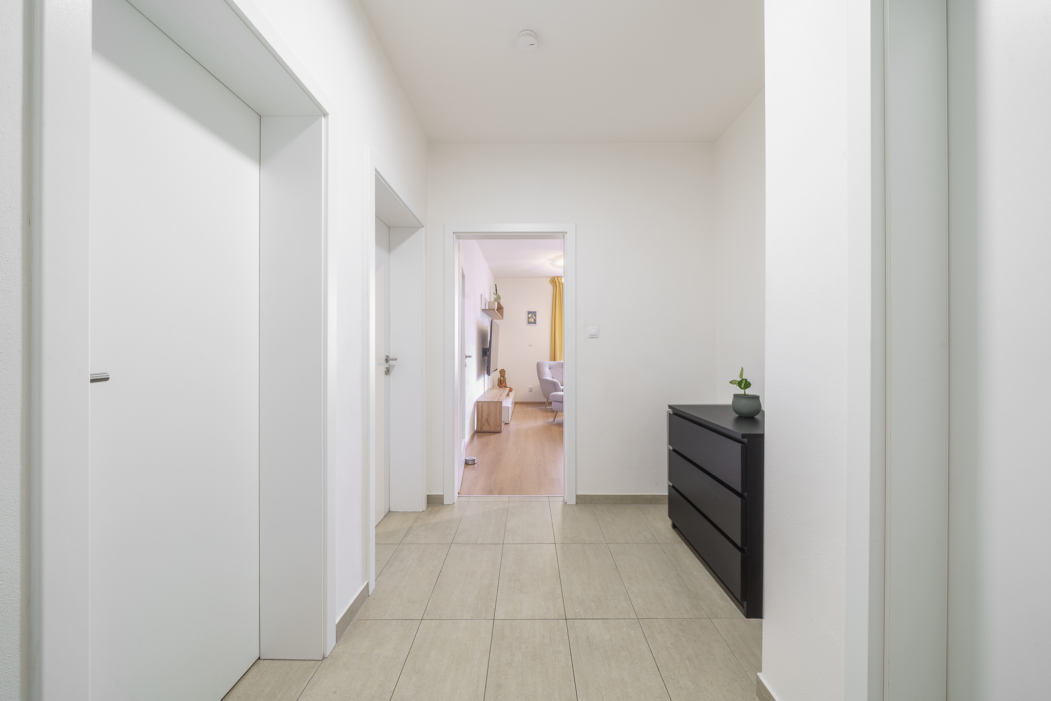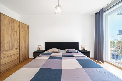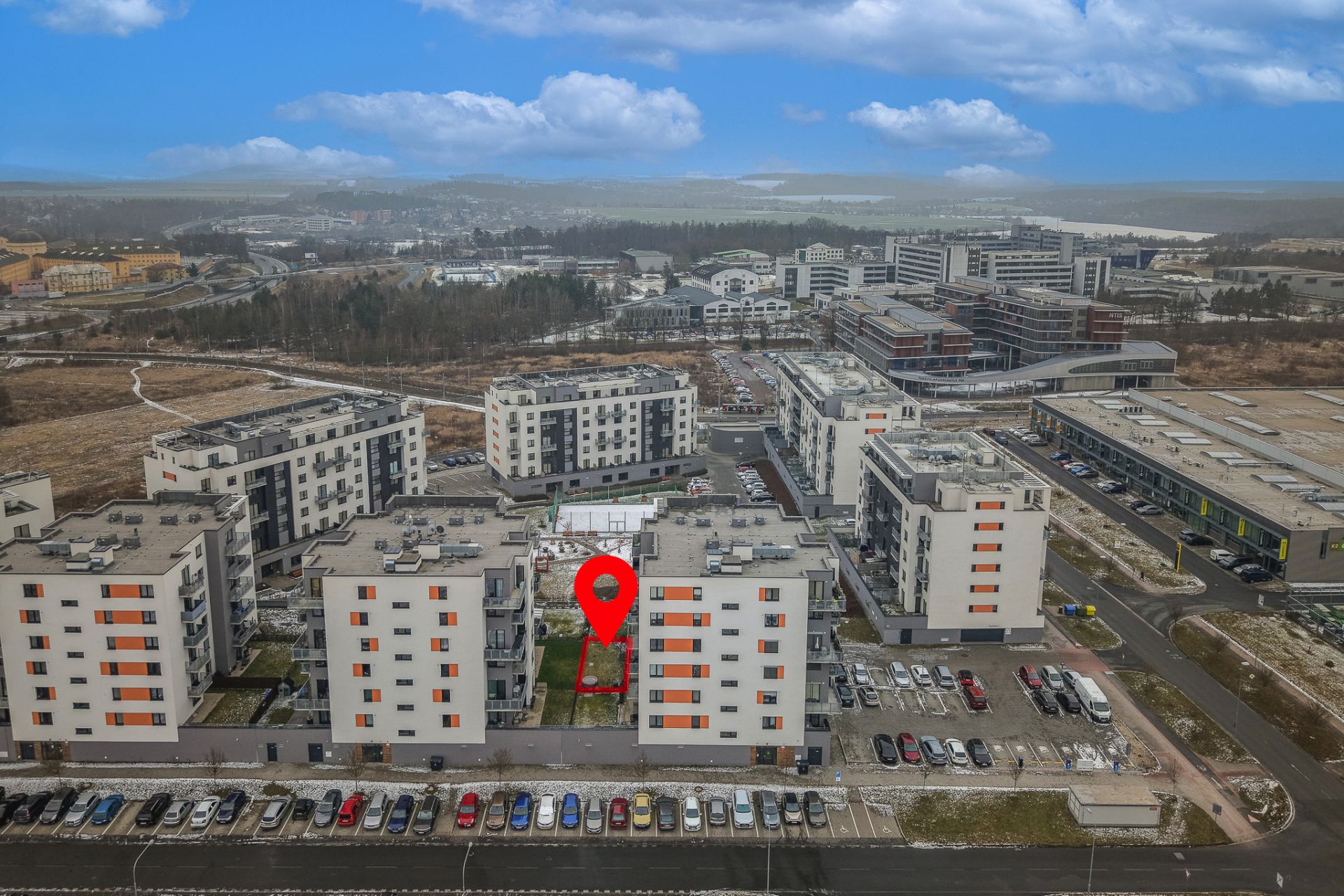 Byt je umístěný v 1. patře s přímým vstupem na terasu a předzahrádku o výměře 83 m. Zaujme čistým moderním pojetím, vysokým komfortem bydlení a promyšlenou dispozicí vhodnou jak pro mladou rodinu, tak pro starší pár hledající klid a pohodlí, případně i bezbariérové řešení včetně parkování. Součástí bytu jsou dvě garážová stání umístěná vedle sebe, ideální pro dvě vozidla nebo komfortní parkování bez nutnosti manévrování.