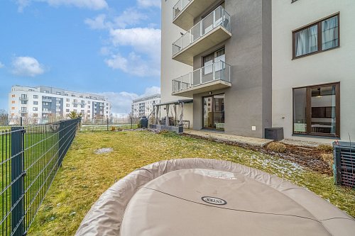V koupelně vám poskytne komfort vana pro chvíle odpočinku. Toaleta je závěsná. Z předsíně je vstup do praktické komory s přípravou na pračku a sušičku. Prostorná předsíň umožňuje komfortní řešení úložných prostor. Z obývacího pokoje i ložnice je přímý vstup na terasu s pergolou a předzahrádku, která nabízí dostatek soukromí i prostoru pro relax. K bytu náleží sklepní kóje, v domě je kočárkárna, v okolí také dostatek parkovacích míst. Lokalita patří mezi velmi žádané, v příjemné docházkové vzdálenosti se nachází řeka Radbuza a vodní nádrž České Údolí, nazývaná také Borská nebo Litická přehrada, která je oblíbeným místem pro rekreaci, rybaření a okolo vede cyklostezka. Najdete zde i Borský park. Zastávka MHD je cca 50 metrů od domu, univerzita i fakultní nemocnice jsou v rychlé dojezdové vzdálenosti a do centra Plzně se MHD dostanete přibližně za 15 minut.