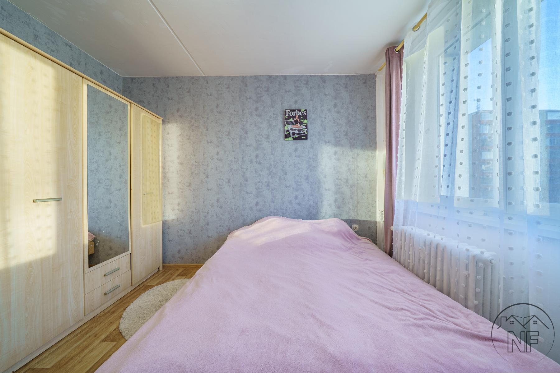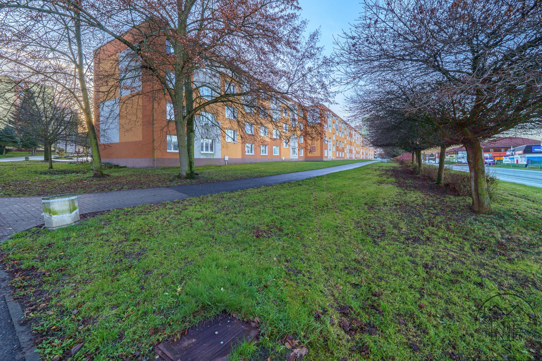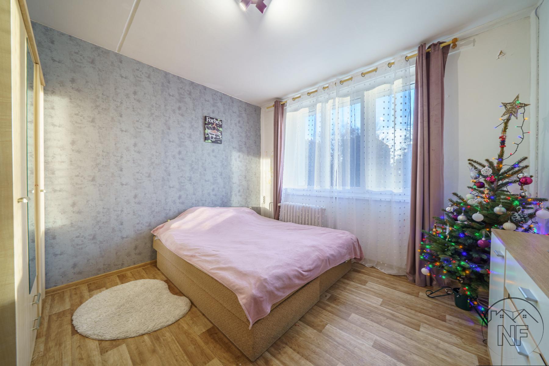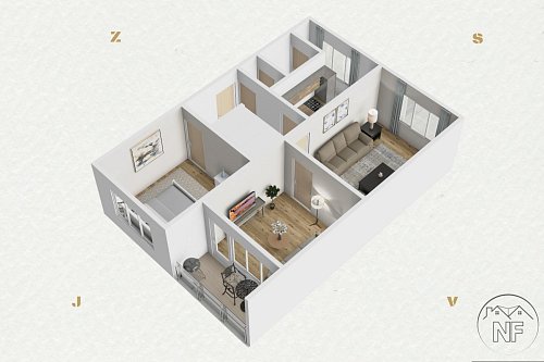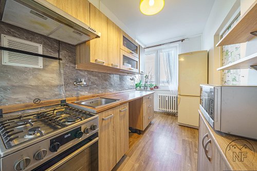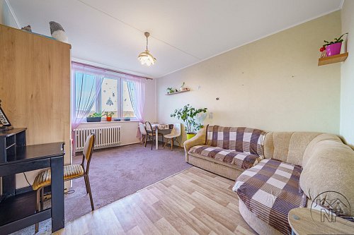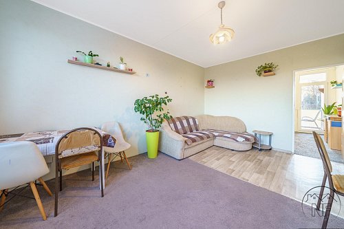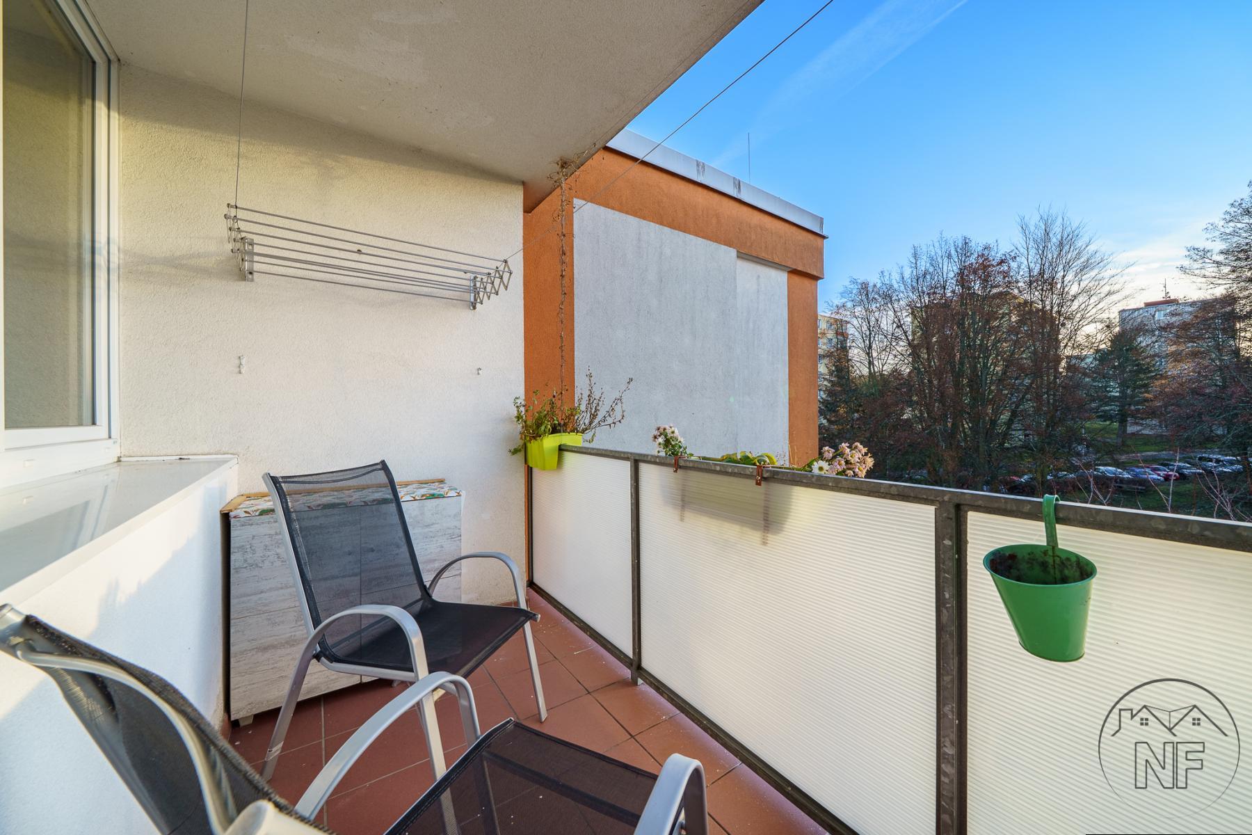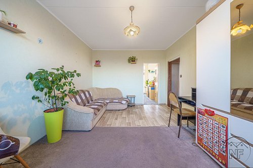 Dispozice je velmi dobře řešená - dva neprůchozí pokoje, obývací pokoj, samostatná kuchyně, koupelna a oddělené WC. Jádro je umakartové, velmi zachovalé. Kuchyně je vybavena novější a pěknou kuchyňskou linkou. Vytápění bytu je dálkové. Pokoje jsou světlé a dobře využitelné, přičemž obývací pokoj tvoří přirozené centrum bytu. Lze do něj vstoupit jak přímo z kuchyně, tak z předsíně, což zvyšuje praktičnost celého uspořádání. Prostorná lodžie pak nabízí příjemné místo k posezení i relaxu.