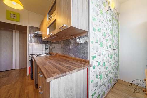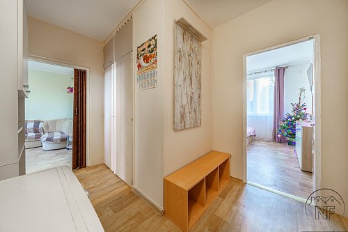 Předsíň s vestavěnými skříněmi je praktická a přehledná, ideální pro každodenní život. Výhodou bytu je také fakt, že nad ním nejsou žádní sousedé, což výrazně přispívá ke klidnému bydlení. Byt o dispozici 3+1 se nachází ve 3. patře domu bez výtahu v ulici Marie Majerové. Celková plocha činí 67,7 m2 včetně lodžie o velikosti 5,1 m2 a sklepa, dle prohlášení vlastníka.