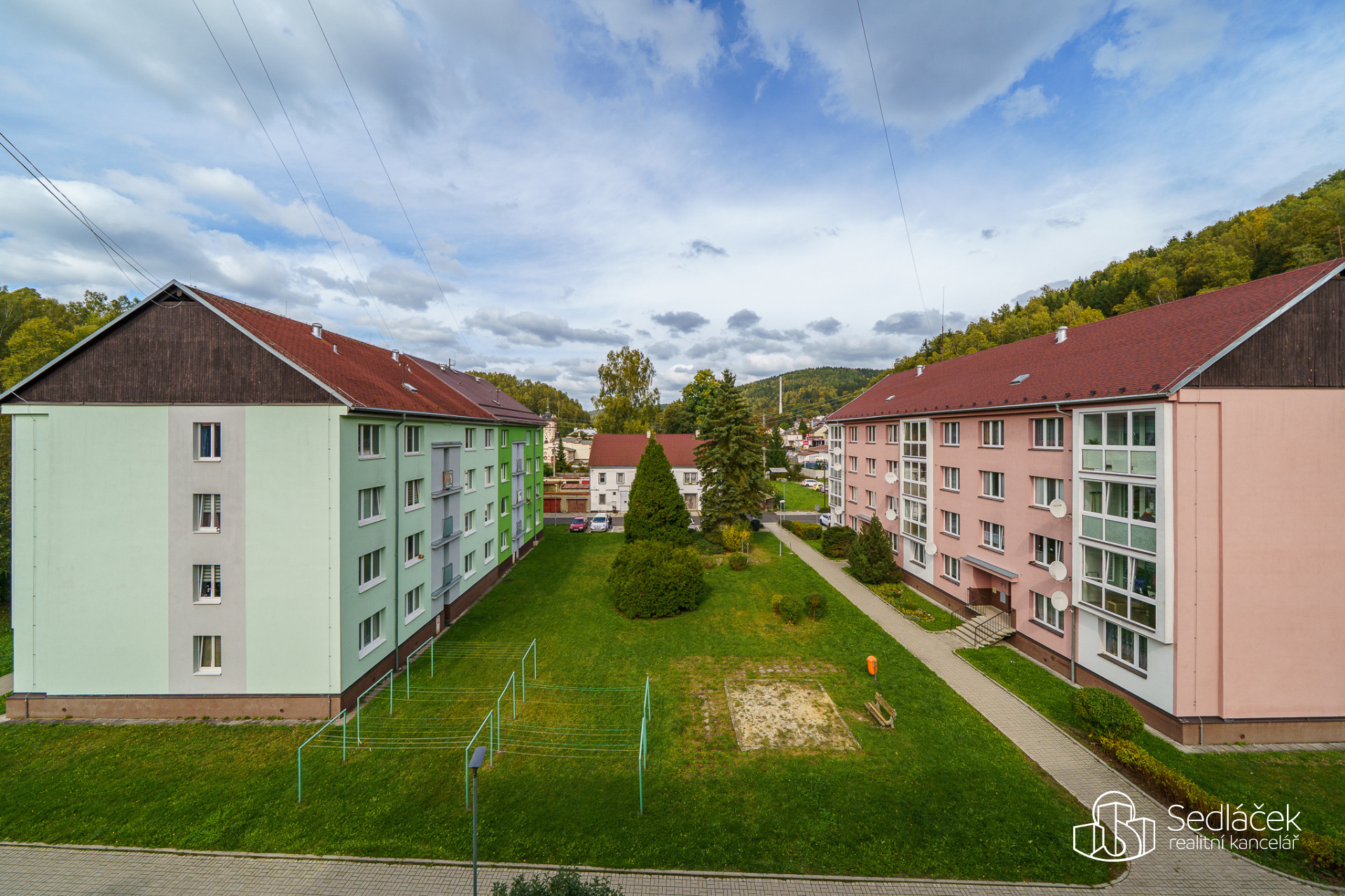 Nabízíme k prodeji byt 2+1 o celkové ploše 63,2 m² včetně lodžie a sklepa, který se nachází ve 3. patře panelového domu bez výtahu v klidné části města Kraslice, ulice Soukenická.